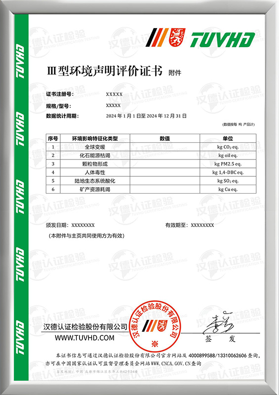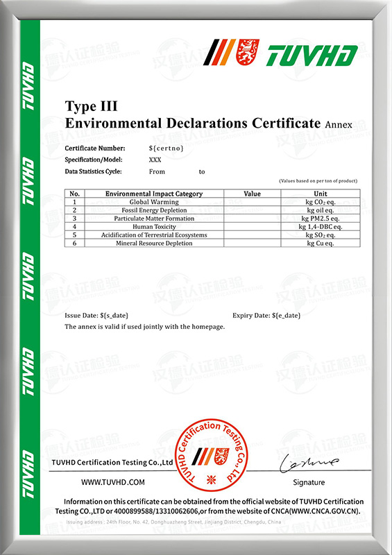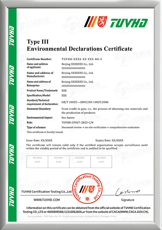 Ⅲ型環(huán)境聲明評(píng)價(jià)證書(shū)