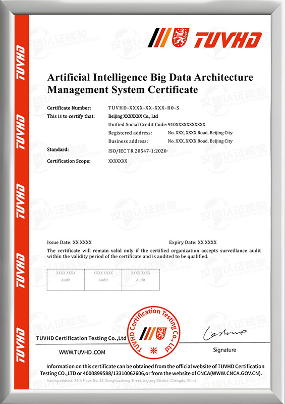 人工智能大數(shù)據(jù)架構(gòu)管理體系認(rèn)證證書(shū)