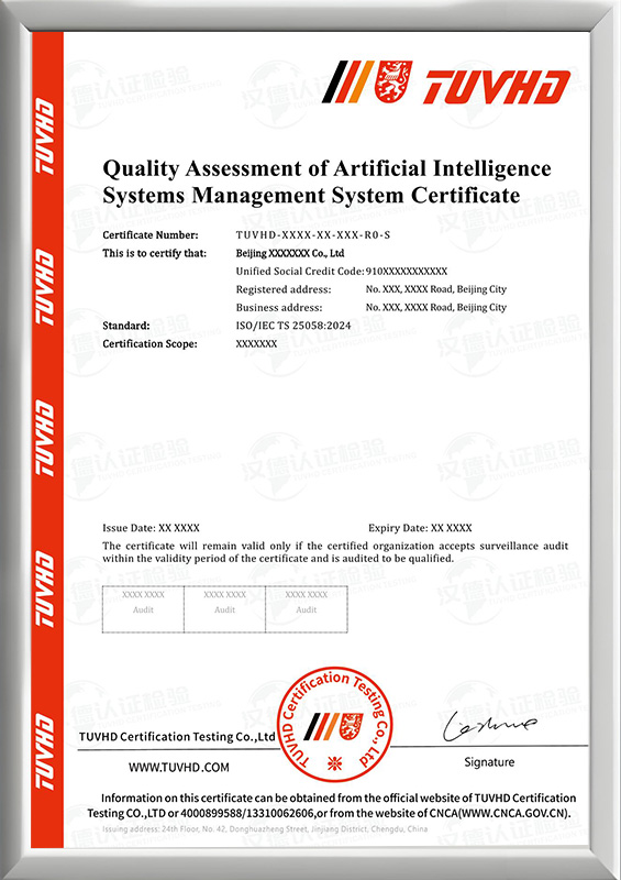 人工智能系統質量評估管理體系認證證書