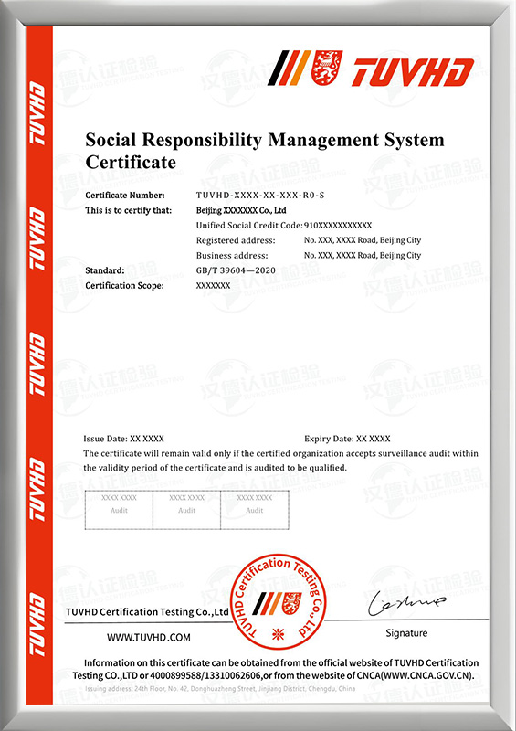社會責(zé)任管理體系認證證書