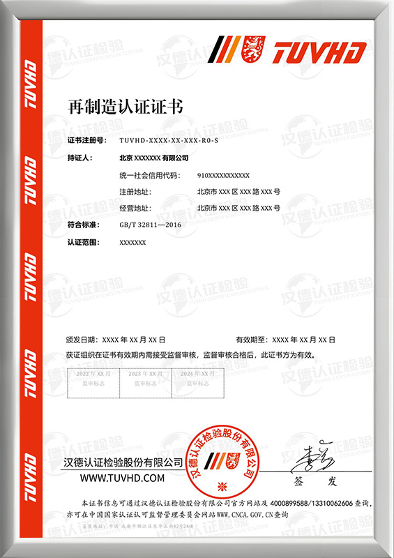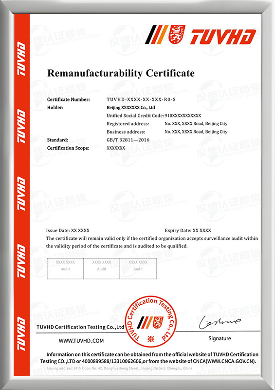 再制造認證證書