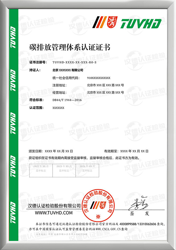 排放管理體系認證證書