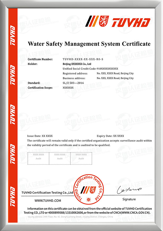 水安全管理體系認證證書