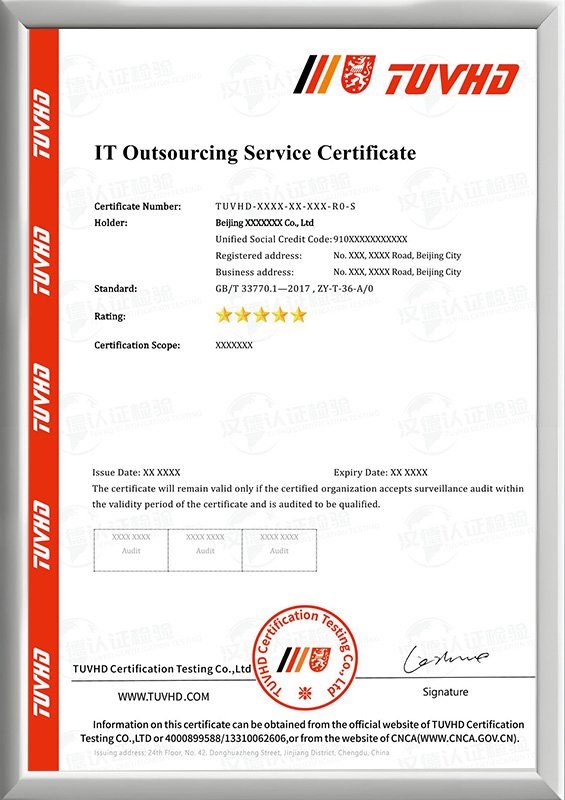 信息技術外包服務認證證書