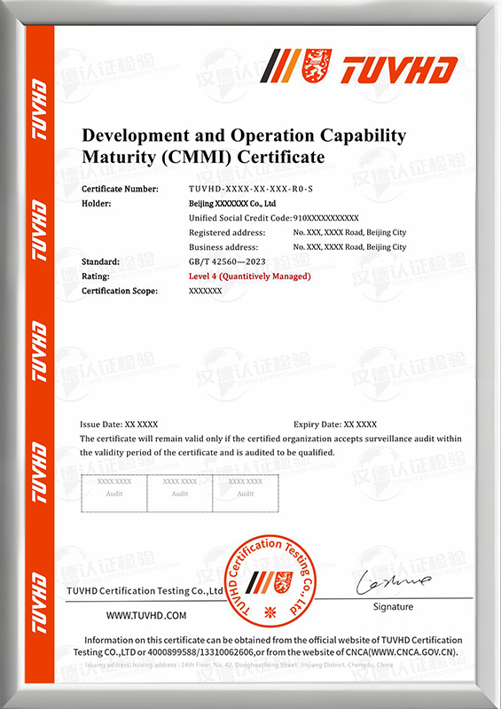 開發運維一體化能力成熟度(CMMI)認證證書