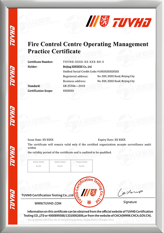 消防控制室運行管理規范認證證書