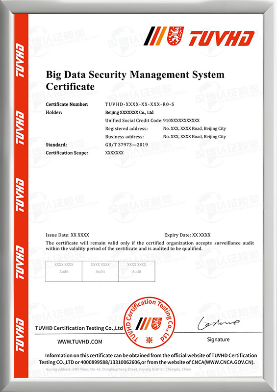 大數據安全管理體系認證證書