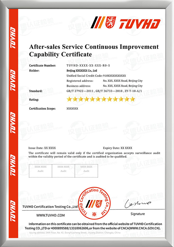 售后服務(wù)持續(xù)改進(jìn)能力認(rèn)證證書(shū)