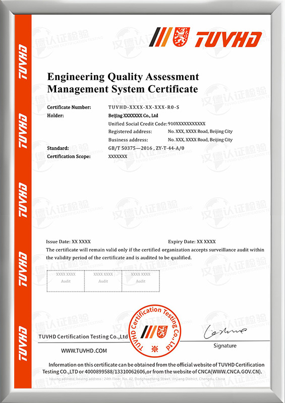 工程質量評價體系認證證書