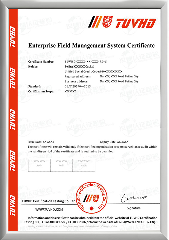 企業(yè)現(xiàn)場(chǎng)管理體系認(rèn)證證書