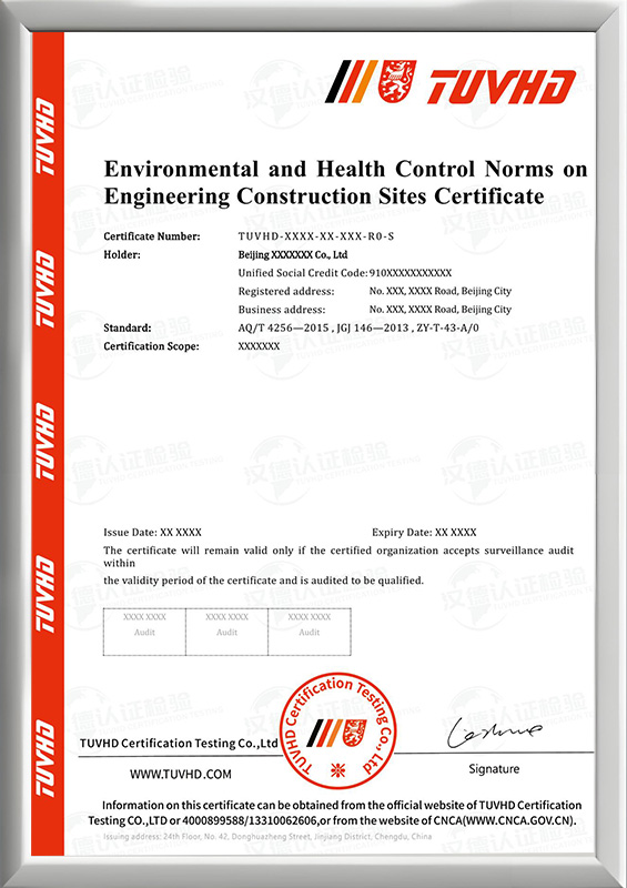 工程施工現(xiàn)場(chǎng)環(huán)境與衛(wèi)生控制規(guī)范認(rèn)證證書