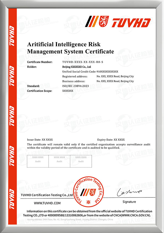 人工智能風險管理體系認證證書