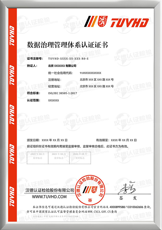 數據治理管理體系認證證書