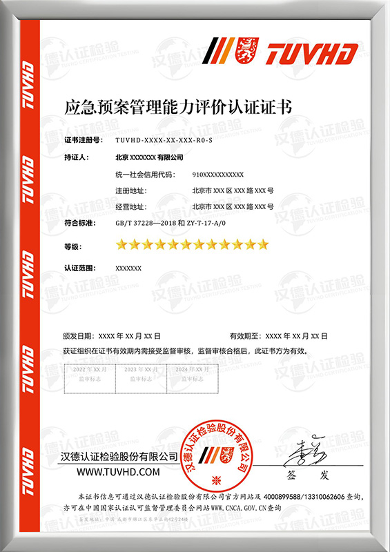 應急預案管理能力評價認證證書