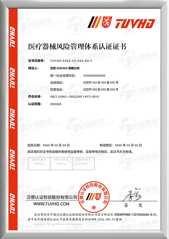 醫療器械風險管理體系認證證書