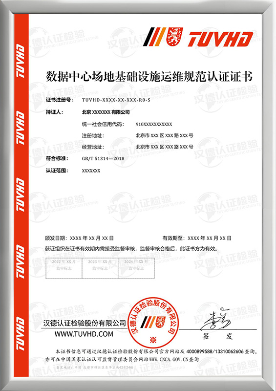 數據中心場地基礎設施運維規范認證證書
